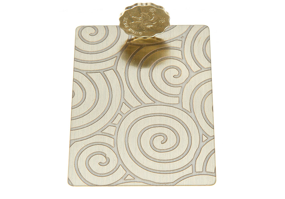 蚀刻板是在物件表面通过化学的方法,腐蚀出各种花纹图案。以8K镜面板或者拉丝板为底板,进行蚀刻处理后,对物体表面再进行深加工,可进行局部的和纹,拉丝,嵌金,局部钛金等各式复杂工艺处理,实现图案明暗相间,色彩绚丽的效果。蚀刻不锈钢包括彩色不锈钢蚀刻,图案多种。